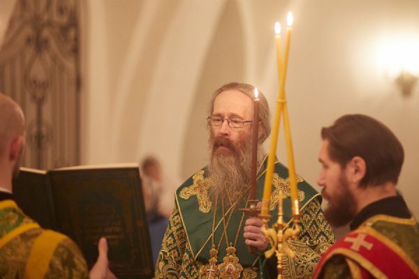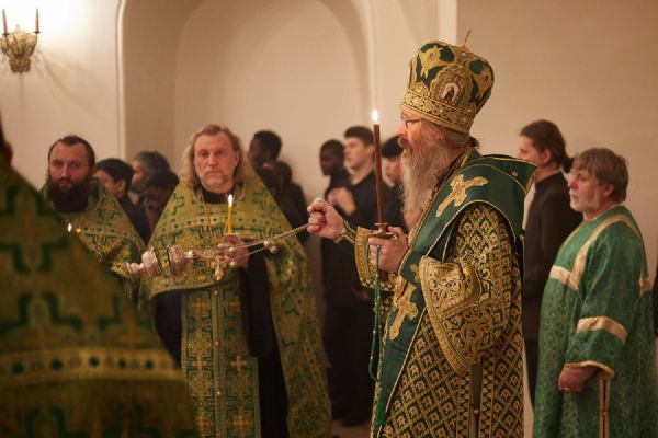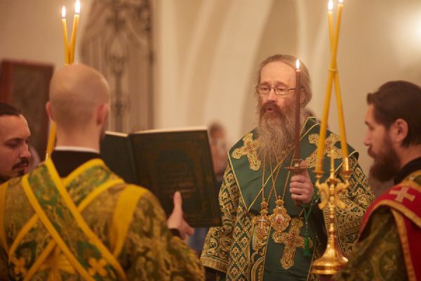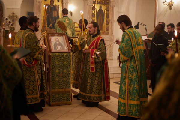 В канун дня памяти преподобного Сергия Радонежского митрополит Ростислав совершил всенощное бдение в Богоявленском кафедральном соборе