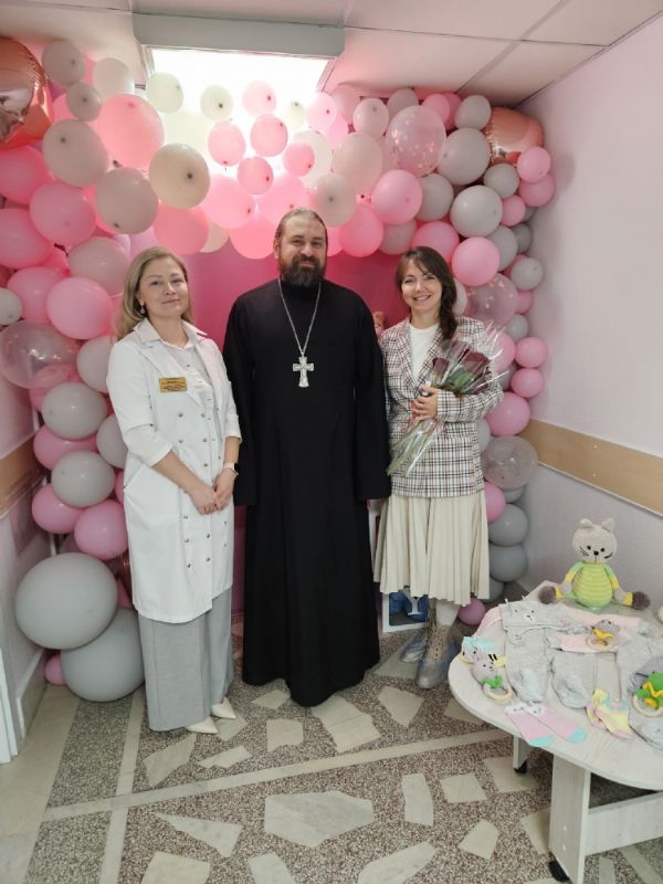 После основной части праздника отец Дионисий и матушка Ольга посетили все отделения центра. Они встретились м мамами, которые уже родили, поздравил мам, находящиеся в отделении патологии, на сохранении — батюшка поддержал их и поздравил с праздником.