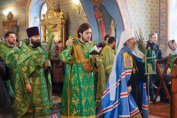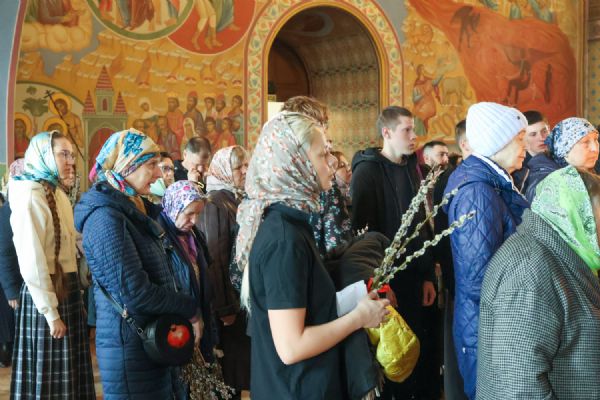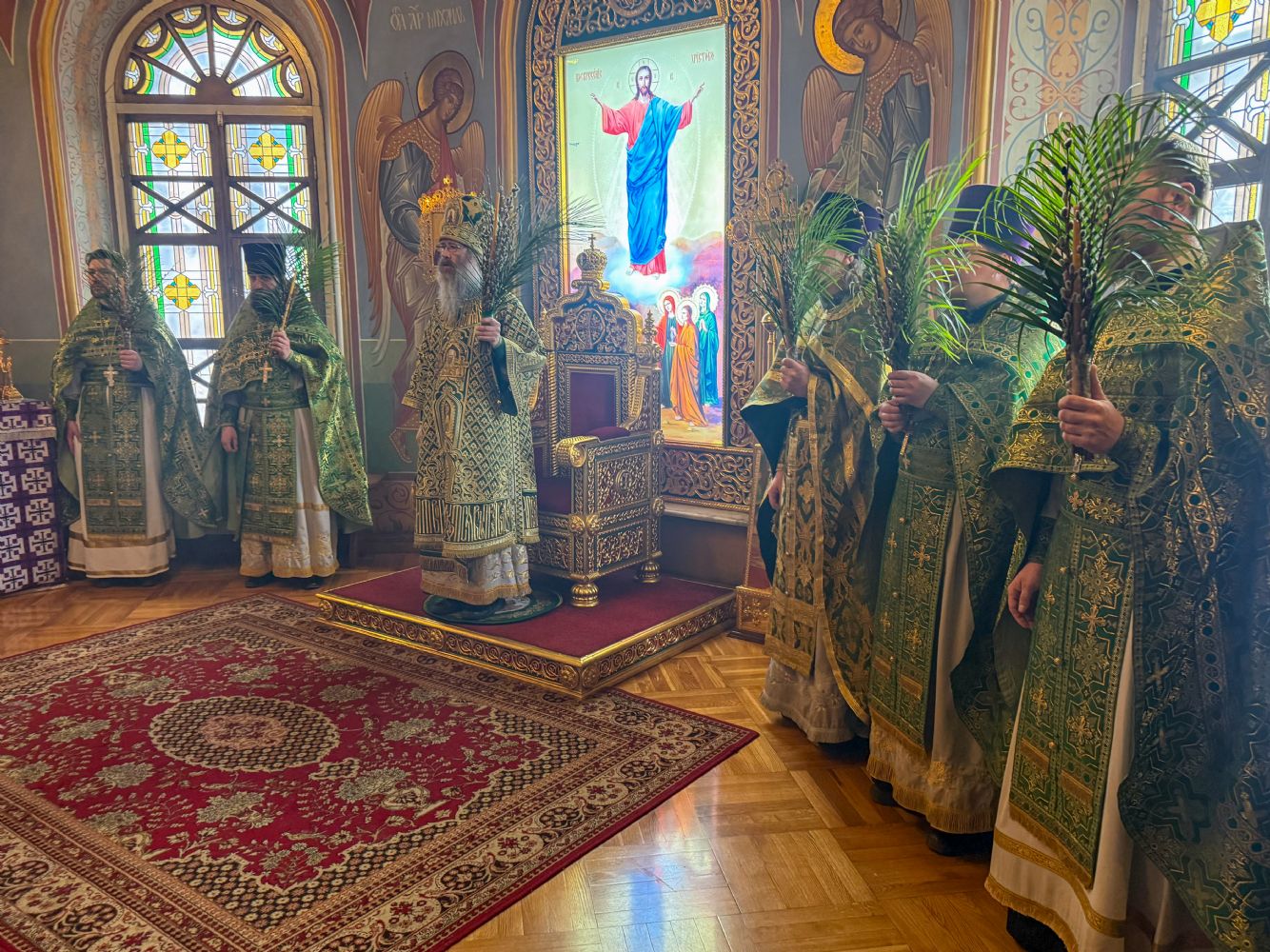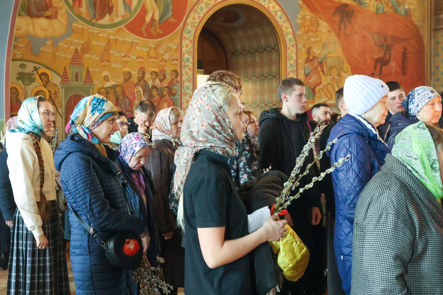 В верхнем приделе собора собралось множество верующих, которые принесли с собой вербочки, освященные накануне. По окончании Божественной литургией, за которой многие прихожане причастились Святых Христовых Таин, Его Высокопреосвященство обратился к собравшимся с архипастырским словом и поздравил всех с Праздником.