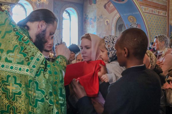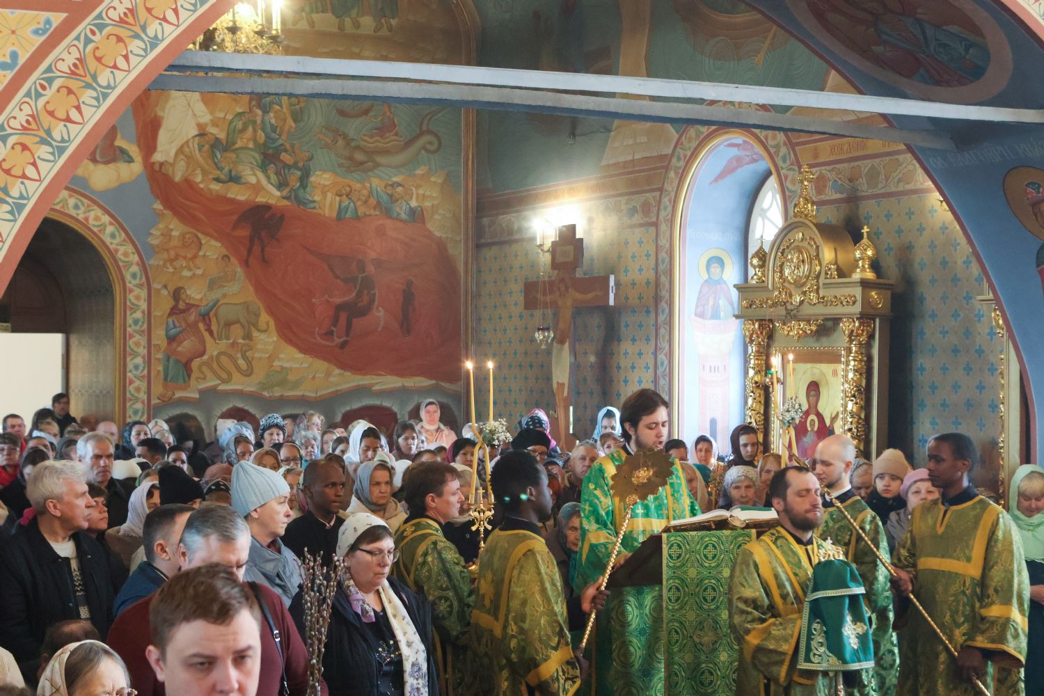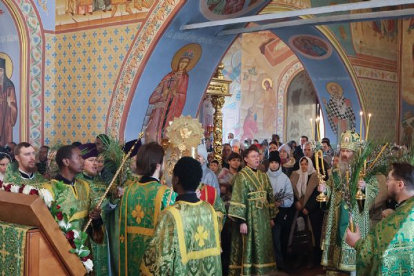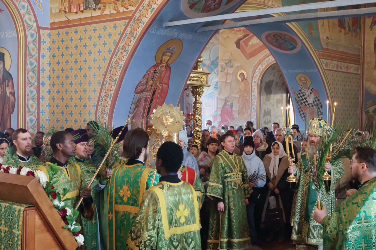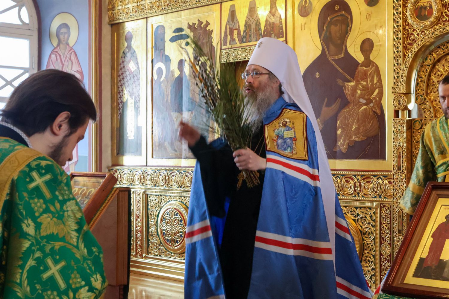В верхнем приделе собора собралось множество верующих, которые принесли с собой вербочки, освященные накануне. По окончании Божественной литургией, за которой многие прихожане причастились Святых Христовых Таин, Его Высокопреосвященство обратился к собравшимся с архипастырским словом и поздравил всех с Праздником.