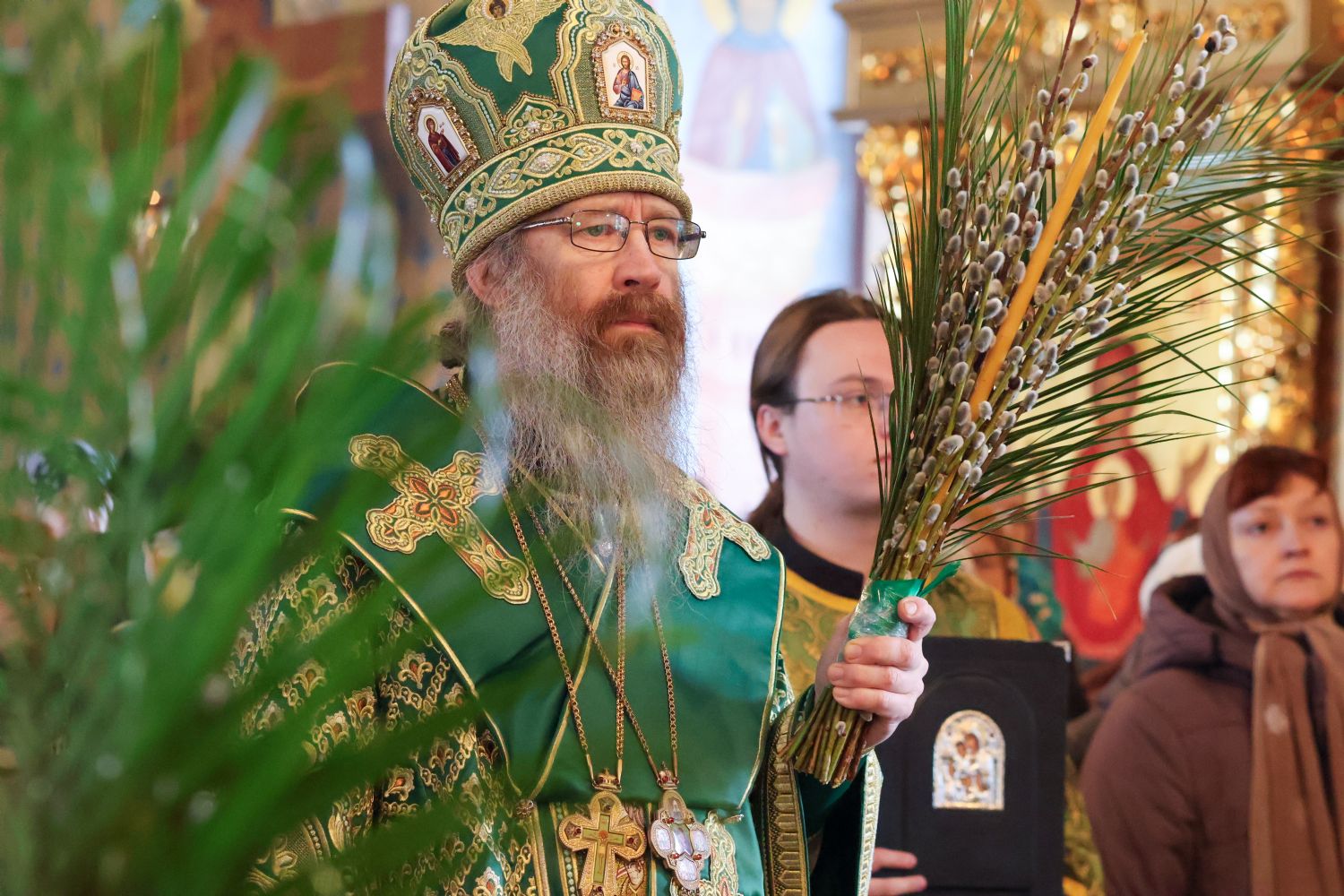 В сослужении с духовенством собора при молитвенным антифонном пении хора ТДС и архиерейского хора, Глава Томской митрополии возглавил Божественную литургию в великий праздник Входа Господня в Иерусалим, который в народе именуют Вербным воскресеньем.